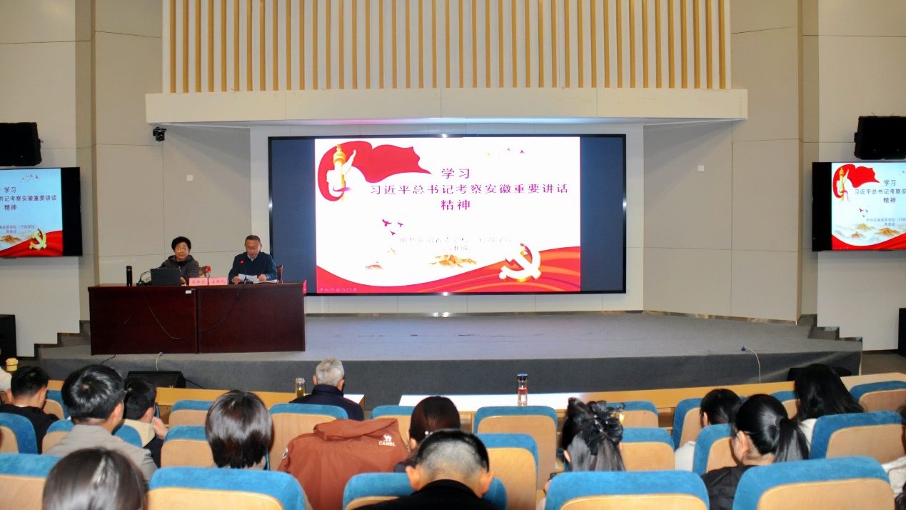11月29日下午,学院举办学习习近平总书记考察安徽重要讲话精神报告会,邀请安徽省委党校教授高淮成作专题报告。报告会由学院党委副书记孙建华主持,学院思政课教师代表、辅导员代表参加报告会。
