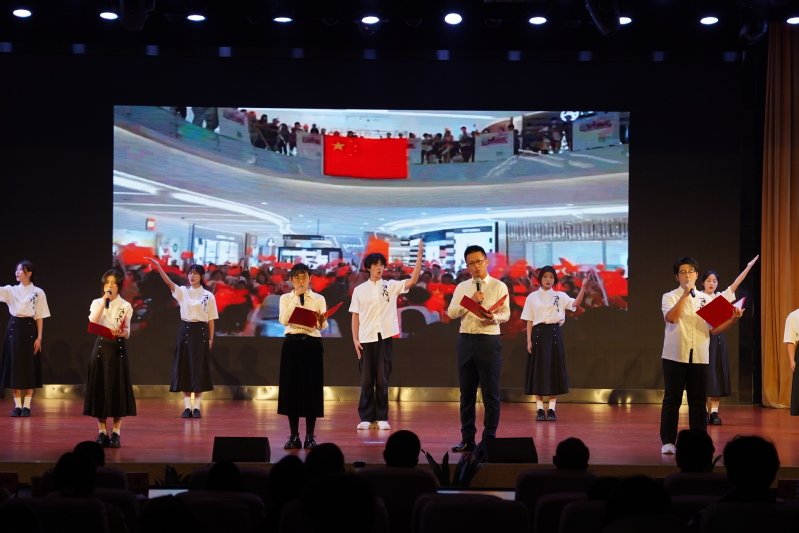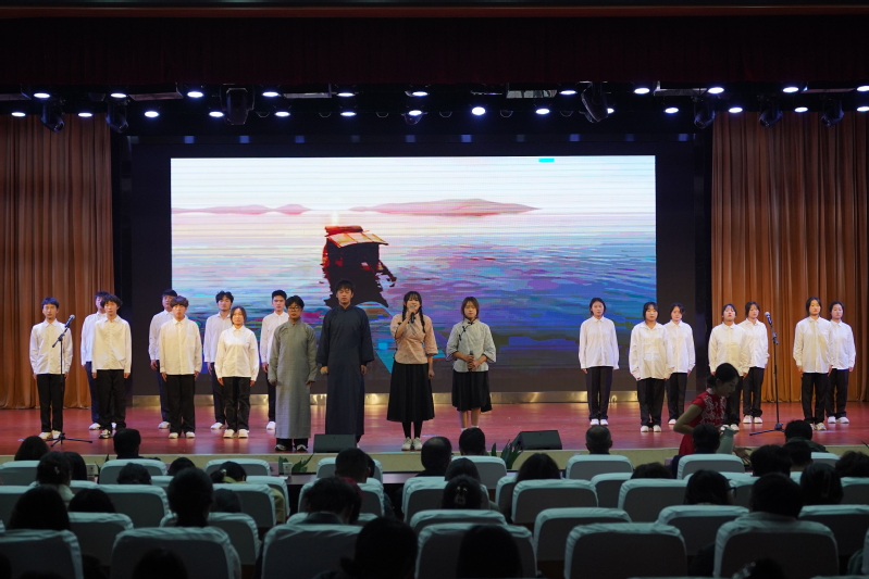 诵读会现场气氛热烈,各支队伍按顺序依次登台,诵读了《星星之火,可以燎原》《中国少年》等作品。同学们穿越时空,用声情并茂的激情朗诵和深入人心的情景表演使大家在诵读经典中领悟了深邃思想、在聆听中汲取了前进力量。