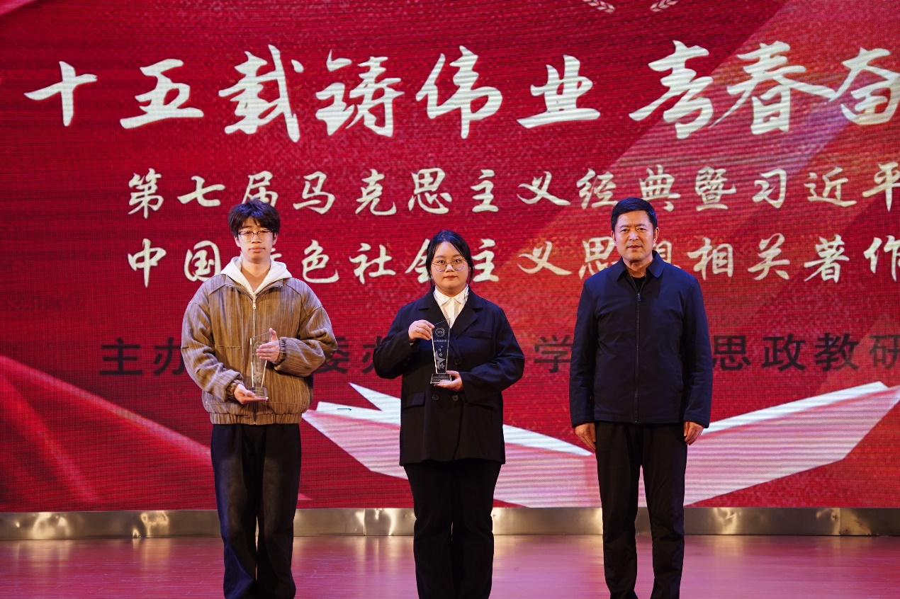 12月6日下午,学院在新站校区举办“七十五载铸伟业,青春奋斗谱华章”第七届马克思主义经典暨习近平新时代中国特色社会主义思想相关著作诵读会。学院领导张明辉、孙建华、秦少锋、王鑫、张昊、王波出席活动并为获奖队伍颁奖。
