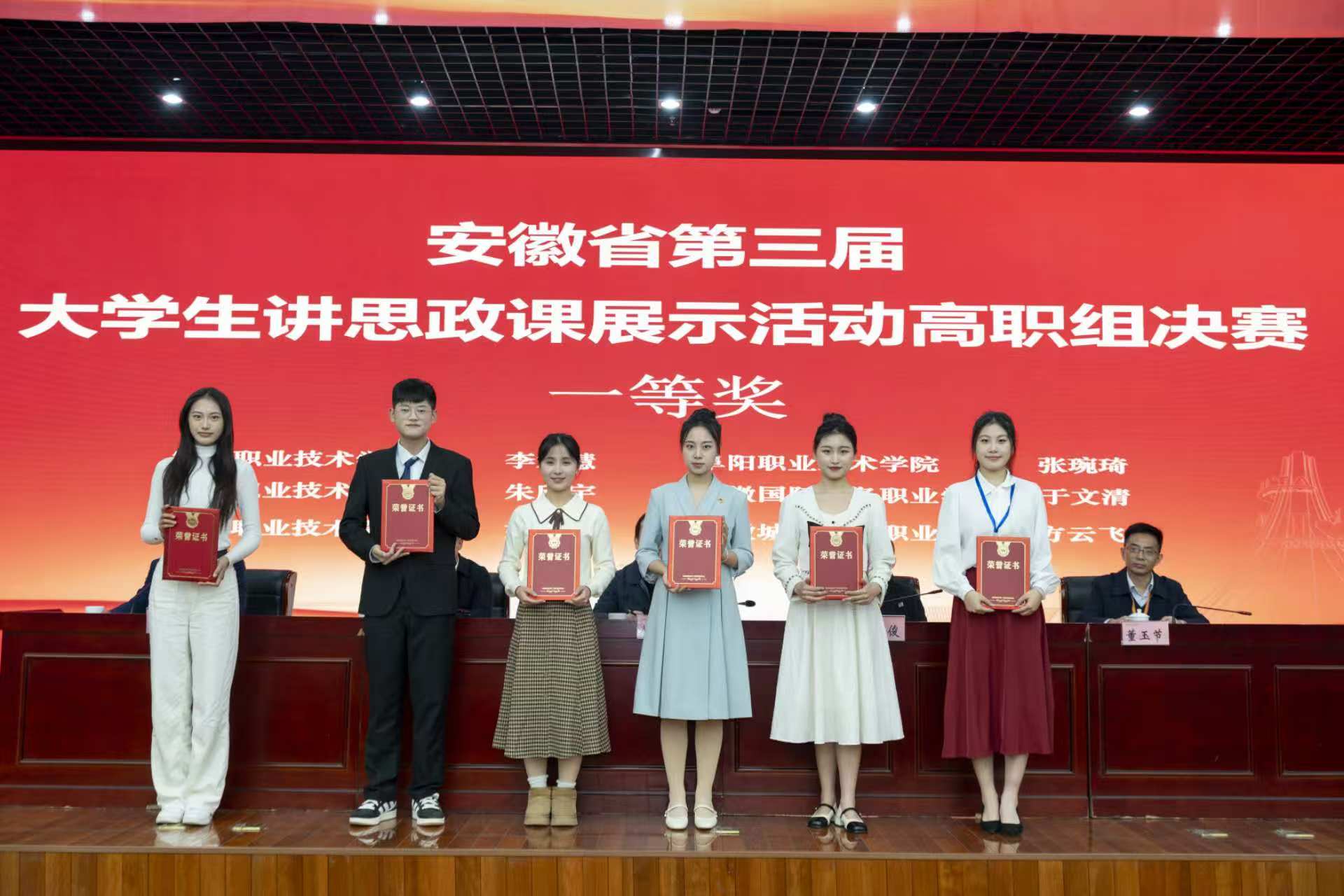 12月27日,由中共安徽省委教育工委主办、安徽职业技术学院承办的安徽省第三届大学生讲思政课展示活动高职组决赛在合肥落下帷幕。经过激烈角逐,我院思政教研部教师徐萍、刘玲指导的2023级建筑装饰1班方云飞团队(团队成员:倪语诺、程道阳)夺得决赛一等奖。