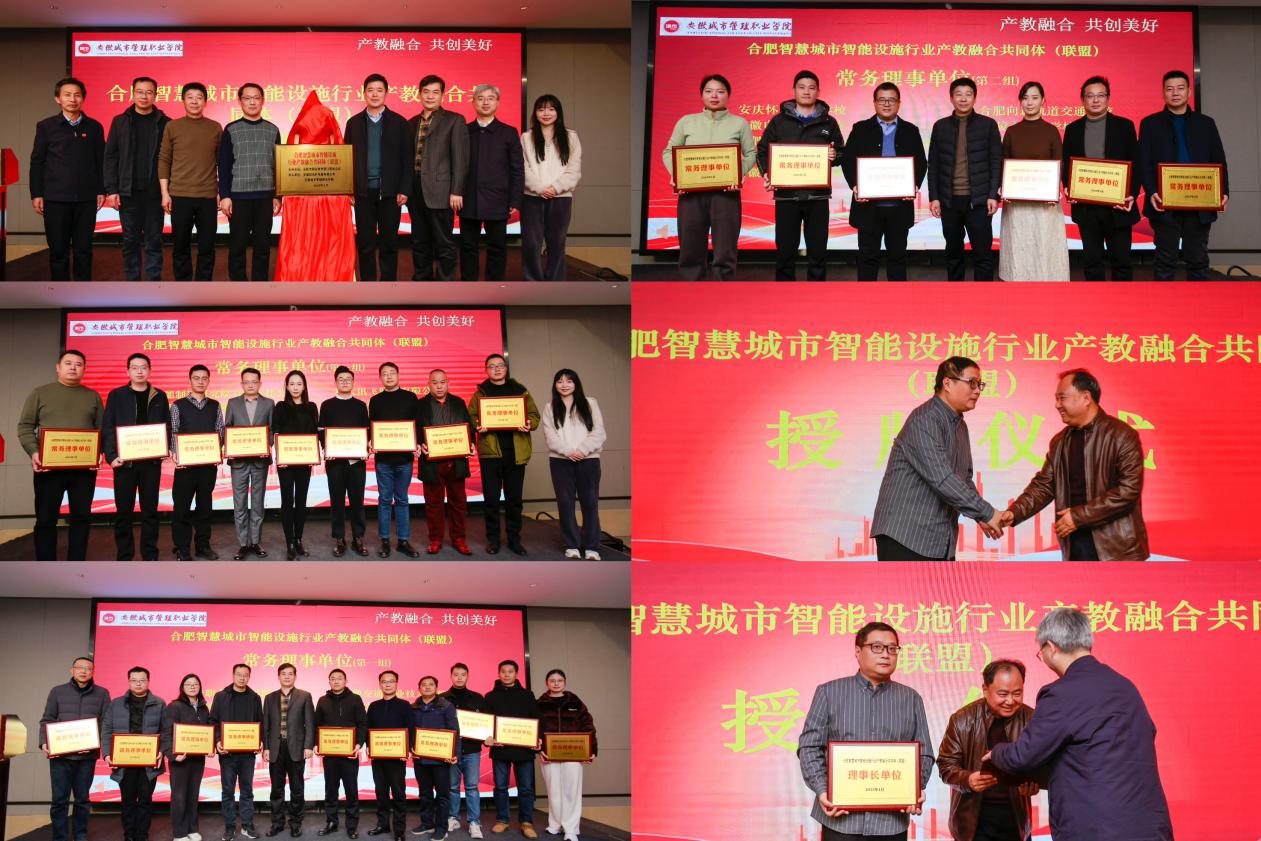 1月10日,合肥智慧城市智能设施行业产教融合共同体(联盟)成立大会暨安徽现代城市职业教育集团二届四次理事大会在合肥顺利召开。省直机关工委办公室副主任骆实,省工业和信息化厅科技处二级调研员李明胜,合肥市教育局职业与成人教育处处长李邦灯、副处长许晓晨,合肥工业大学汽车工程技术研究院副院长朱仲文,我院党委书记张明辉以及来自全省中高职院校、企业代表、协会的教授、学院职工代表等100多人出席本次大会。
