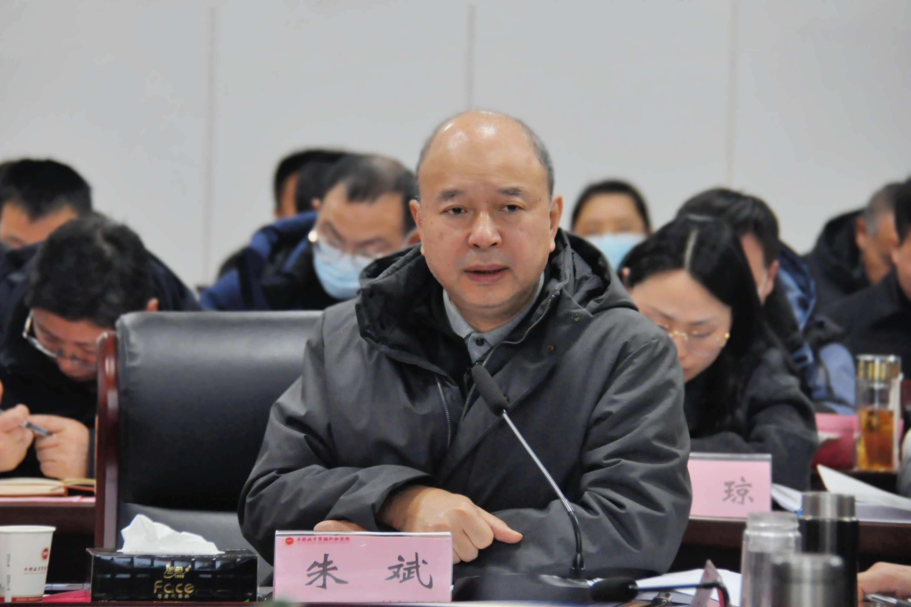 朱斌从学院的办学定位、未来出路两个方面作了讲话。他指出,要深入学习贯彻党的二十大和二十届二中、三中全会精神以及习近平总书记考察安徽重要讲话精神,贯彻落实全国教育大会精神,落实立德树人根本任务,深化教育综合改革,遵循统筹新的发展空间、专业力量、就业市场“三位一体”的理念,对标十大新兴产业,科学谋划专业布局,加强师资队伍建设,加强校地校企合作,奋力推进各项事业取得新突破。他对谋划好2025年的工作提出了四点意见:锚定职业本科建设目标,加快新桥校区建设;认识招生“晴雨表”的重大意义,实现招生录取工作量质双升;认清当前的形势、了解当前职业教育发展的态势、安徽省职业教育的布局和学院未来发展的态势,学习、借鉴兄弟院校的好经验、好做法;把即将反馈的巡视整改问题落实好,纵深推进全面从严治党,推动学院改革发展再上新台阶。他强调,未来三年是学院发展的关键期,全院上下要统一思想、凝聚共识,找准定位、差异竞争,快速提升学院核心竞争力。