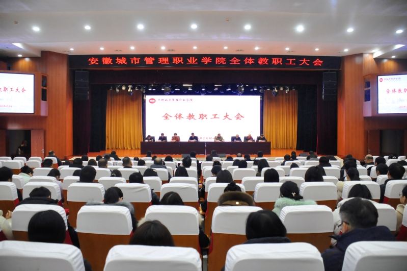 会上,党委书记张明辉总结回顾了学院2024年主要工作,就2025年工作进行部署安排。他指出,2024年学院坚持以习近平新时代中国特色社会主义思想为指导,深入贯彻党的二十大和二十届二中、三中全会、全国教育大会精神,全面落实习近平总书记关于教育的重要论述和考察安徽重要讲话精神,按照省委、省政府、省直机关工委和省教育厅部署要求,落实新时代党的建设总要求,高质量开展党纪学习教育,党的全面领导不断加强;落实立德树人根本任务,内涵建设持续深化;落实各项重点任务,保障能力明显提升。学院入选工信部首批“工业信息安全人才培养专项行动计划”实施单位,通过第四批“三全育人”综合改革试点单位验收,获得“第二届安徽省文明校园”荣誉称号,大数据技术(智慧城市建设与管理)获批安徽省特色专业群建设项目,“智慧康养现代产业学院”获批省级产业学院,2024届毕业生就业工作在全省就业工作推进会上获通报表扬,高等职业教育质量年度报告(2023)再次获评A等级,学院各项事业高质量发展取得显著成效。