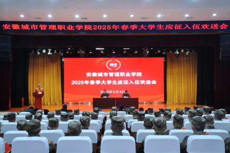 3月3日下午,学院2025年春季大学生应征入伍新兵欢送会在新站校区西辅楼报告厅隆重召开。党委书记张明辉,各二级学院和相关部门负责人、毕业班辅导员、全体应征入伍学生、学生代表、入伍学生家长代表参加欢送会。欢送会由党委委员、副院长王波主持。