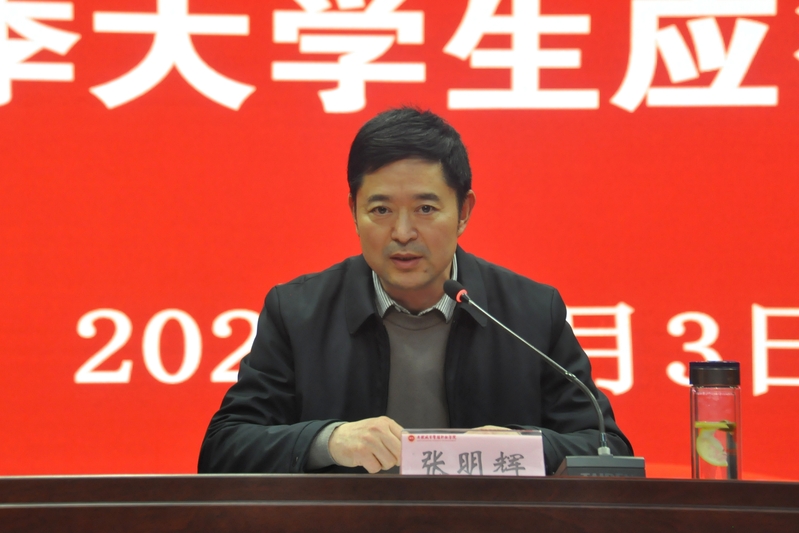 会上,张明辉代表学院党委向应征入伍同学们表示热烈祝贺,向入伍学生家长表示崇高的敬意。并就“如何成为一个合格的军人、优秀的士兵”向新兵们提出了殷切期望:坚定报国志向,牢记初心使命,希望这种志向能够始终伴随大家走过这段不平凡的历程,成为克服今后各种困难的强大精神力量;珍惜历练机会,锤炼过硬本领,过好思想关,做到政治过硬,过好吃苦关,做到军事过硬,过好纪律关,做到作风过硬;立足军营、建功立业,争做优秀士兵,不断加强政治学习、刻苦训练,努力在军队这所“大学院”中勤学苦练、淬炼成钢。