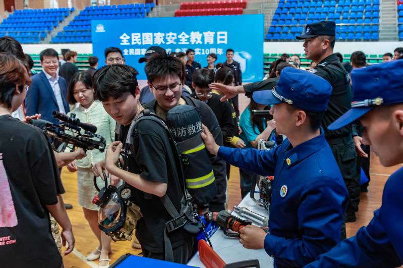 本次活动由合肥市新站高新区管委会主办,合肥市公安局新站分局、安徽城市管理职业学院承办。现场设置了宣传咨询区、互动问答区和特种装备展示区,通过播放国家安全教育视频、发放宣传资料、接受师生咨询、臂盾术展示、警情演练处置等多种形式开展国家安全教育宣传,为在场师生提供一场沉浸式体验。