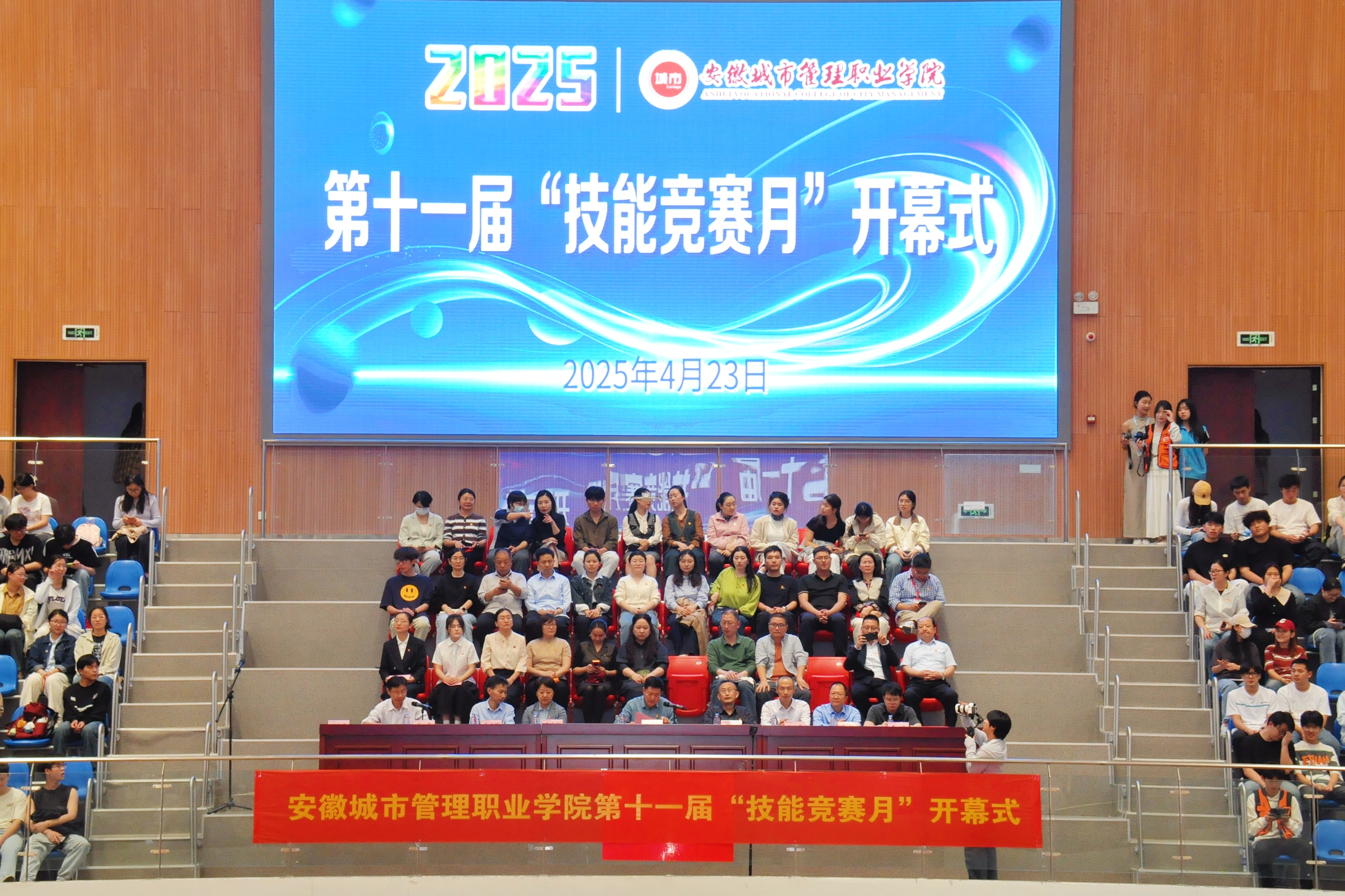 4月23日,学院“技能竞赛月”活动在新站校区体育馆正式开幕。党委书记张明辉出席开幕式并讲话,学院领导班子成员、各教学单位负责人、教务处全体工作人员、教师代表及参赛学生代表参加开幕式。党委委员、副院长张昊主持开幕式。