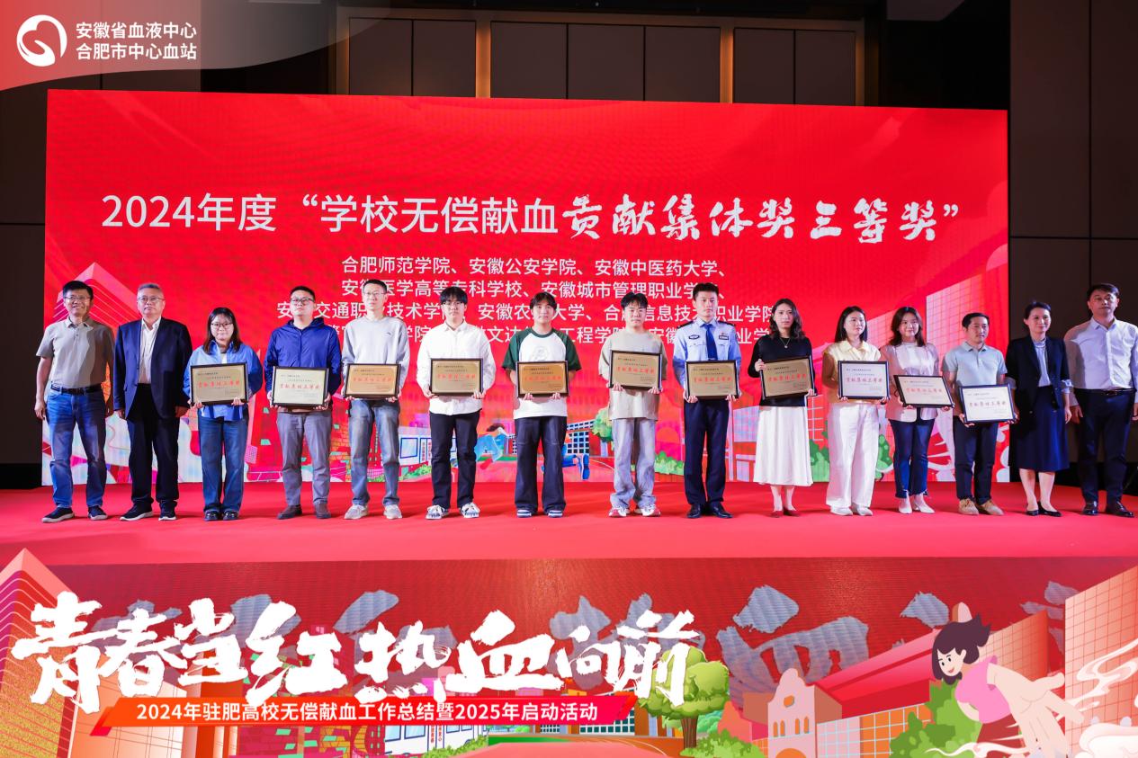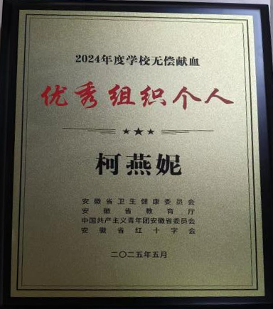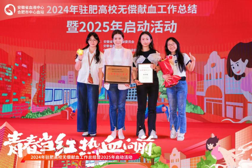 5月7日,2024年度安徽省驻肥高校无偿献血总结暨2025年启动活动在合肥隆重召开。我院凭借全年献血工作的卓越成效荣获2024年度学校无偿献血“贡献集体三等奖”,团委教师柯燕妮获“优秀组织个人”。