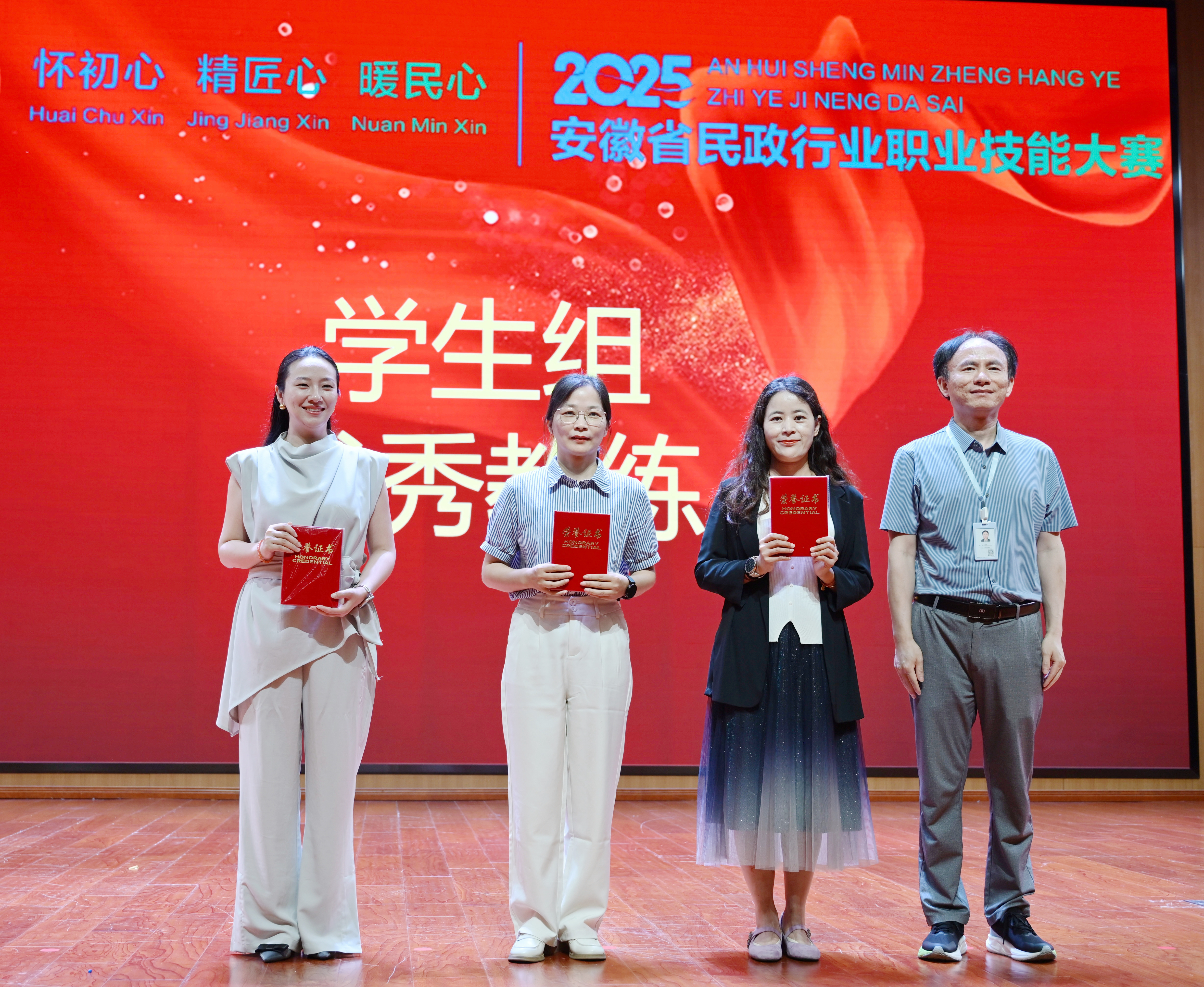 6月28日至30日,2025年安徽省民政行业职业技能大赛在合肥举行。作为省内民政特色鲜明的高校,我院参赛队伍共获3个一等奖、1个二等奖、2个三等奖及3个优胜奖,江文娟、周福君、郭海燕三位指导老师获“优秀教练员”荣誉称号,我院被评为“突出贡献单位”。