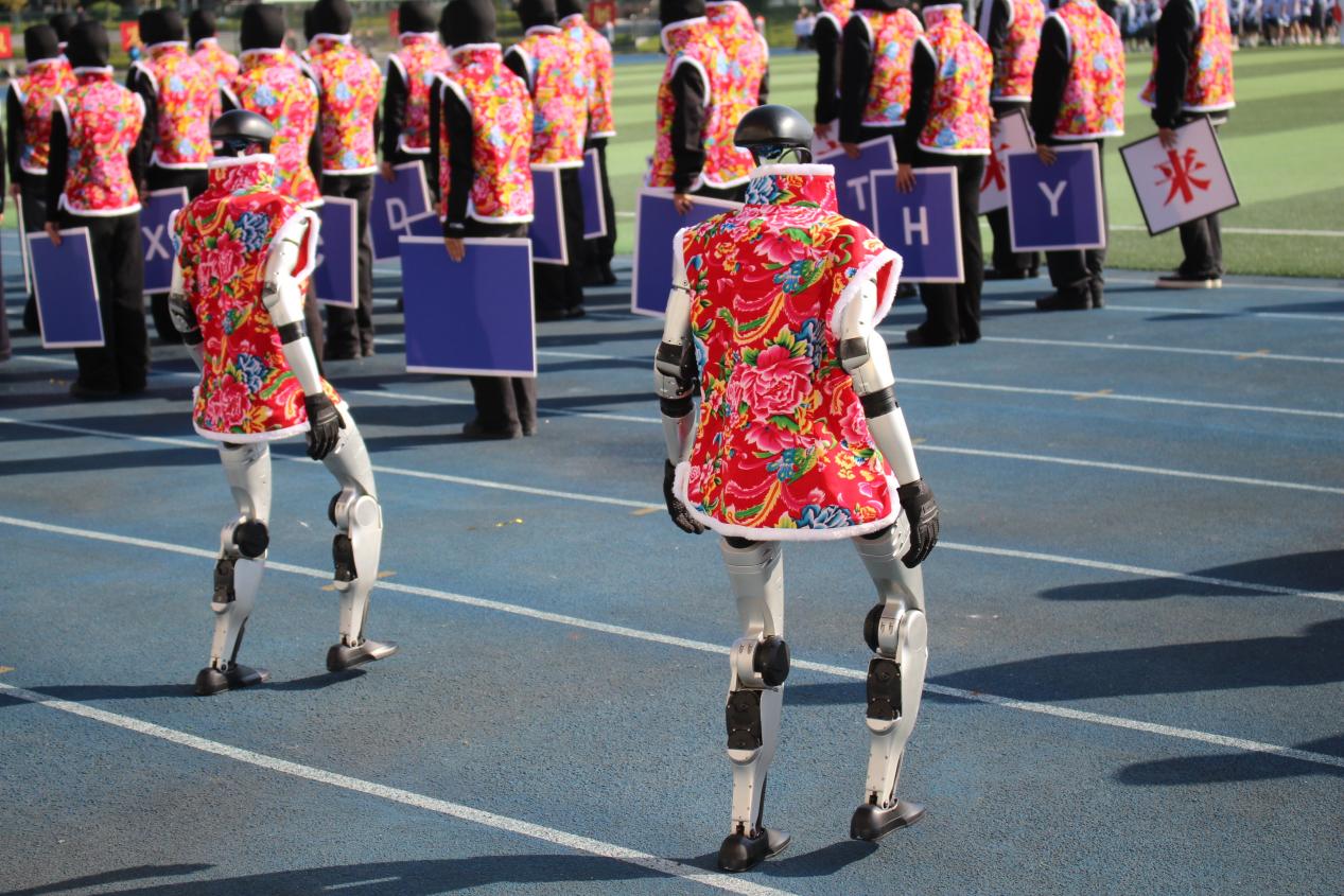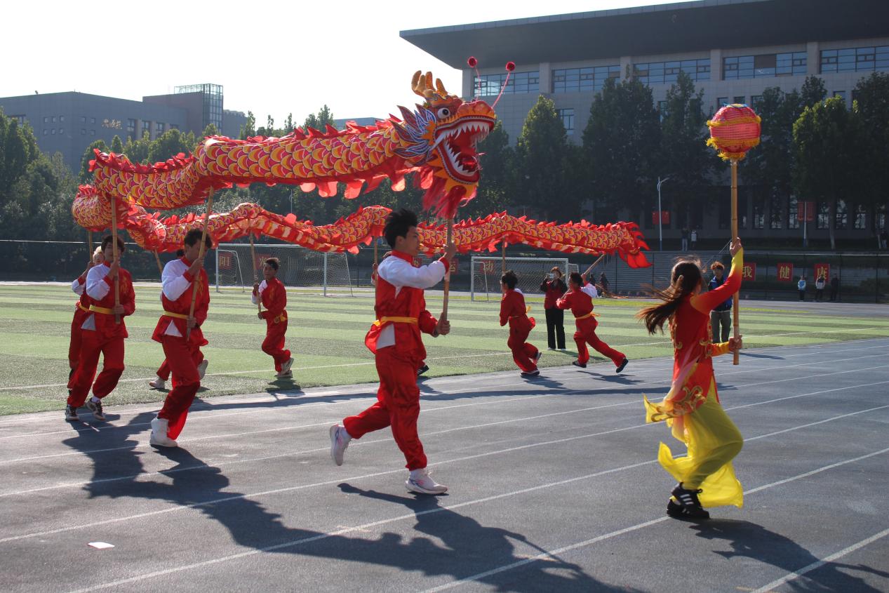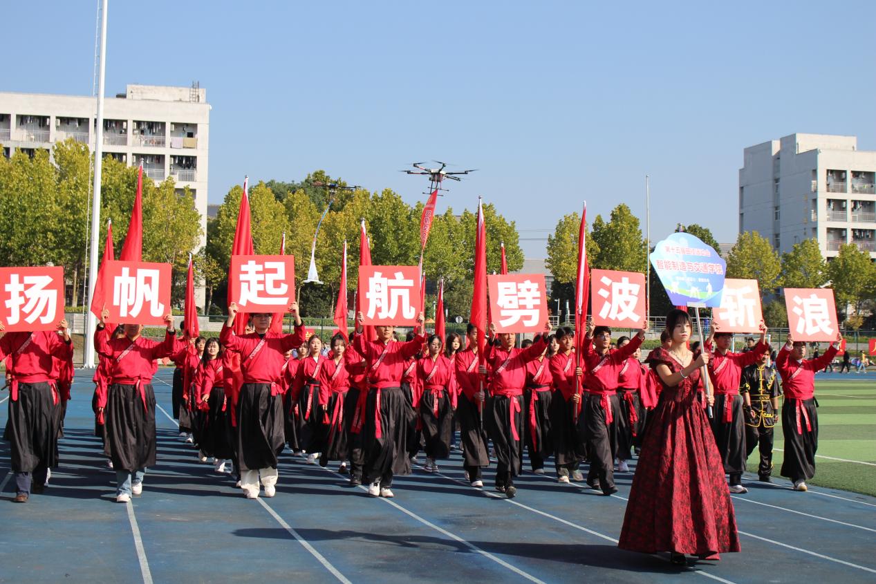 各二级学院及各分工会方阵的入场环节成为开幕式的高潮,他们或身着马面裙、汉服等特色服装或手持创意道具开展舞龙舞狮表演,或利用机器狗等高科技元素将学科专业与创意展示巧妙融合,踏着整齐划一的步伐走过主席台,气势昂扬、神采奕奕,充分展现学科特色与青春风采。