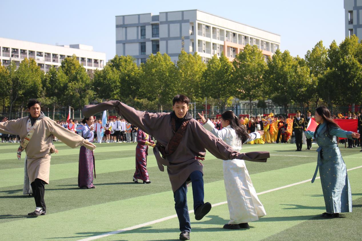 随后,智慧康养学院刘天赐同学、公共教学部李晓兰老师分别代表运动员和裁判员宣誓。开幕表演环节,街舞表演《等你回答》以动感十足的节奏开场,舞者们用灵活的肢体诠释热血,用鲜明的动作释放个性;藏族舞蹈《指歌》则带来不同的视觉体验,舞者们身着藏袍,用热情奔放的舞姿,将雪域高原的独特魅力与运动会的青春活力完美融合,赢得现场观众阵阵掌声。