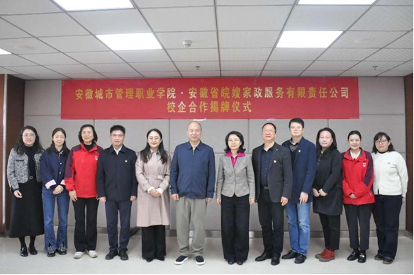 11月13日上午,我院与安徽省皖嫂家政服务有限责任公司校企合作揭牌仪式在新站校区举行。省直机关工委书记朱斌,省妇联党组书记、主席谢兵应邀莅临指导。学院党委书记晏祥,党委委员、副院长王鑫、王波,皖嫂家政董事长丁筱梅、总经理王成芳出席会议,相关二级学院负责人参与此次活动。