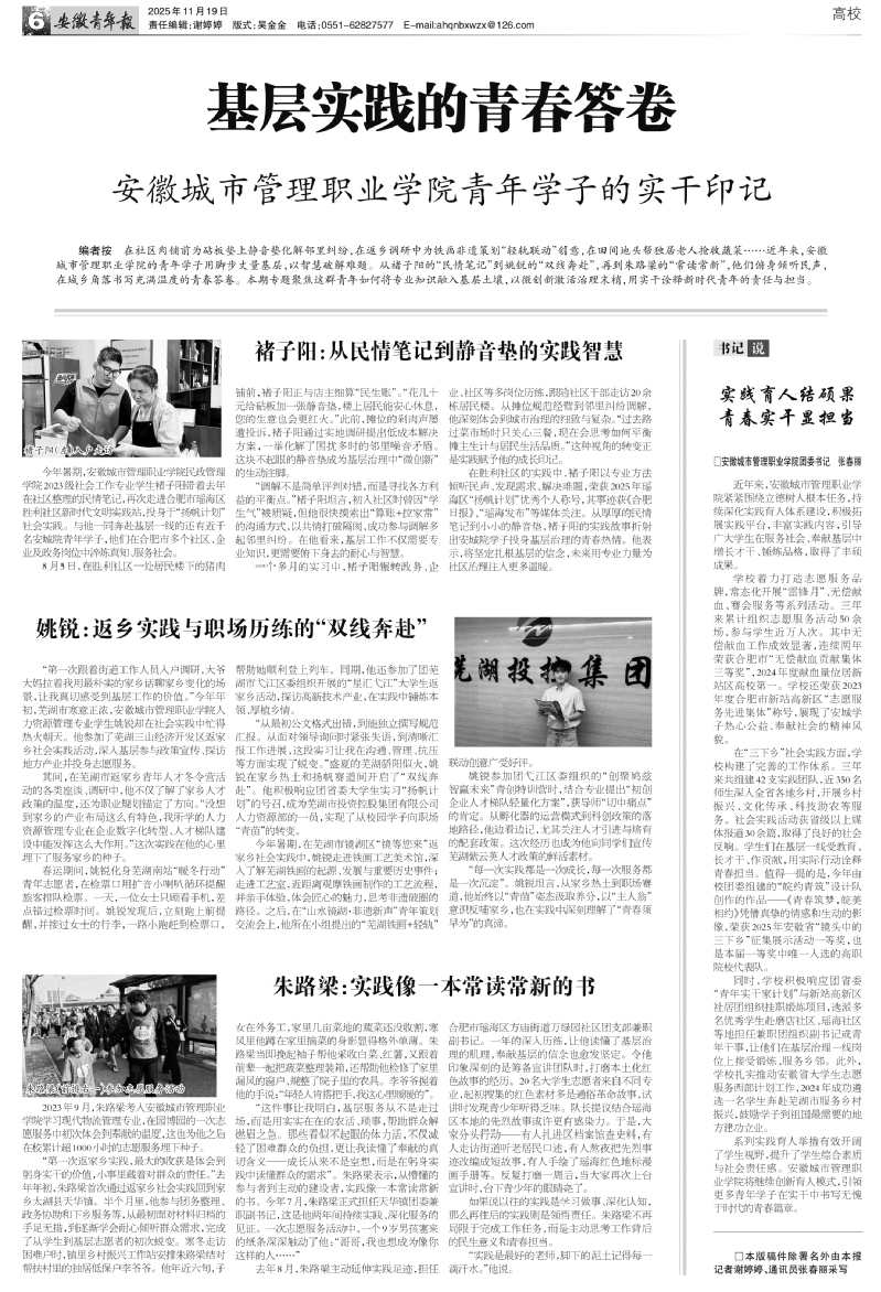 【安徽青年报】基层实践的青春答卷——安徽城市管理职业学院青年学子的实干印记