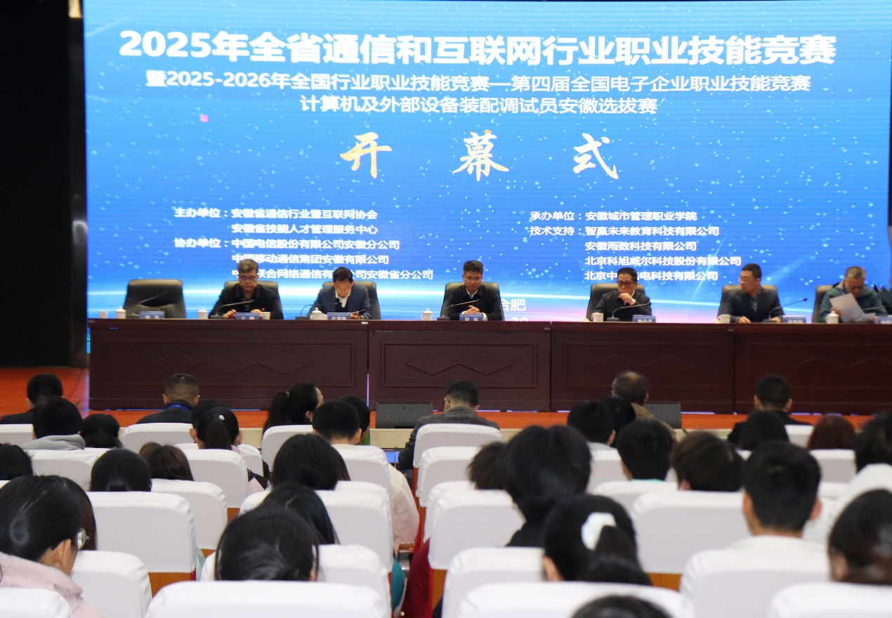 11月30日,2025年全省通信和互联网行业职业技能竞赛暨2025-2026年全国行业职业技能竞赛——第四届全国电子企业职业技能竞赛计算机及外部设备装配调试员安徽选拔赛在我院成功举办。学院党委书记晏祥、安徽省通信行业暨互联网协会会长杨小平,安徽省通信管理局网络安全管理处处长任冀湘、安徽省技能人才管理服务中心副主任张维明、裁判长杨辉军,学院党委委员、副院长张昊、纪委书记王路以及人工智能学院负责人出席开幕式。