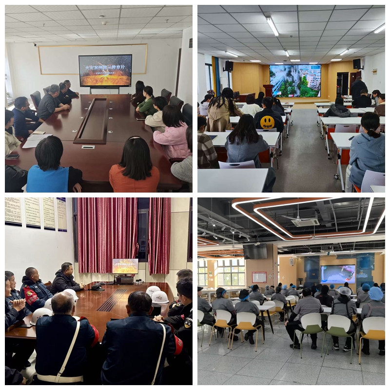 为深刻吸取近年来发生的火灾事故教训,各部门、二级学院(教学部)通过教职工政治理论学习、工作例会等方式组织教职工及下属第三方服务单位人员集中观看火灾事故警示教育片,各班级通过主题班会或晚自习时间组织全体学生集中观看。