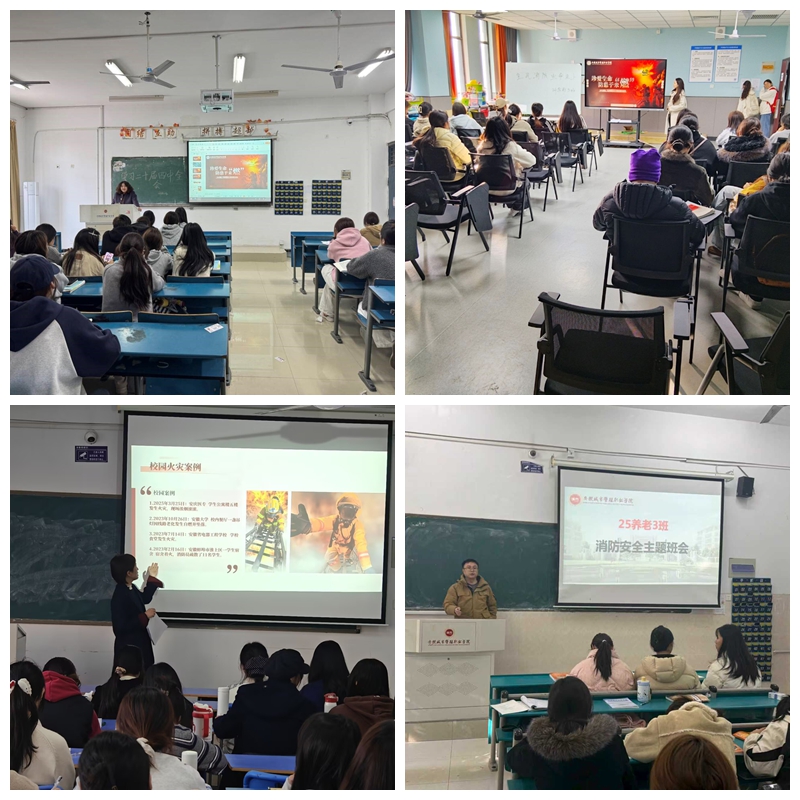 通过线上、线下形式,组织全校各班级召开消防安全主题班会,普及校园消防安全知识,介绍常用消防器材及逃生措施,开展校园火灾案例警示教育。同时依托《大学生安全教育与应急处理训练》课程开展“现代消防安全”专题教学,实现安全教育常态化。