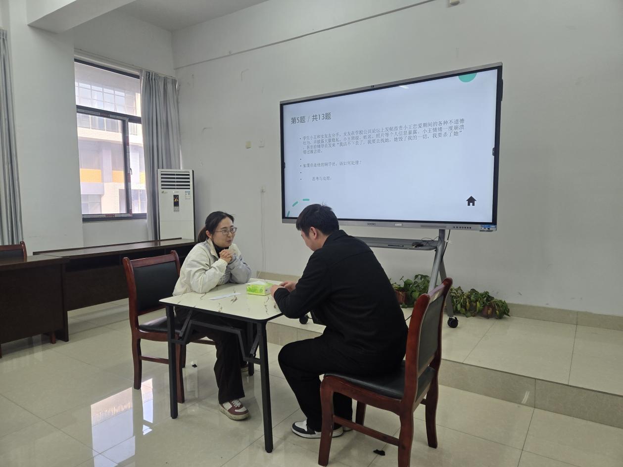 比赛现场,参赛辅导员模拟真实情境,在规定时间内,与“学生”展开谈心谈话,围绕学生提出的问题进行引导启发、答疑解惑。谈话结束后,辅导员们就谈话内容进行简要总结,分析学生面临的问题,并提出相应的解决思路。
