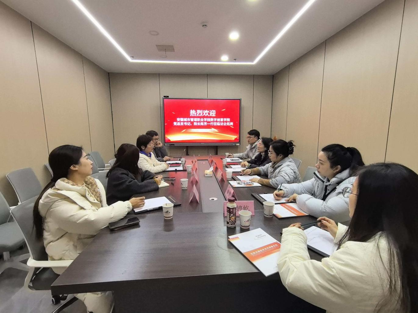 为深化产教融合、推进校企协同育人,1月14日,学院数字创意学院党总支书记、院长陈芳携相关负责人,前往安徽竞拓信息科技有限公司开展考察交流,公司相关负责人陈竹秀、卢志民接待了考察人员一行。