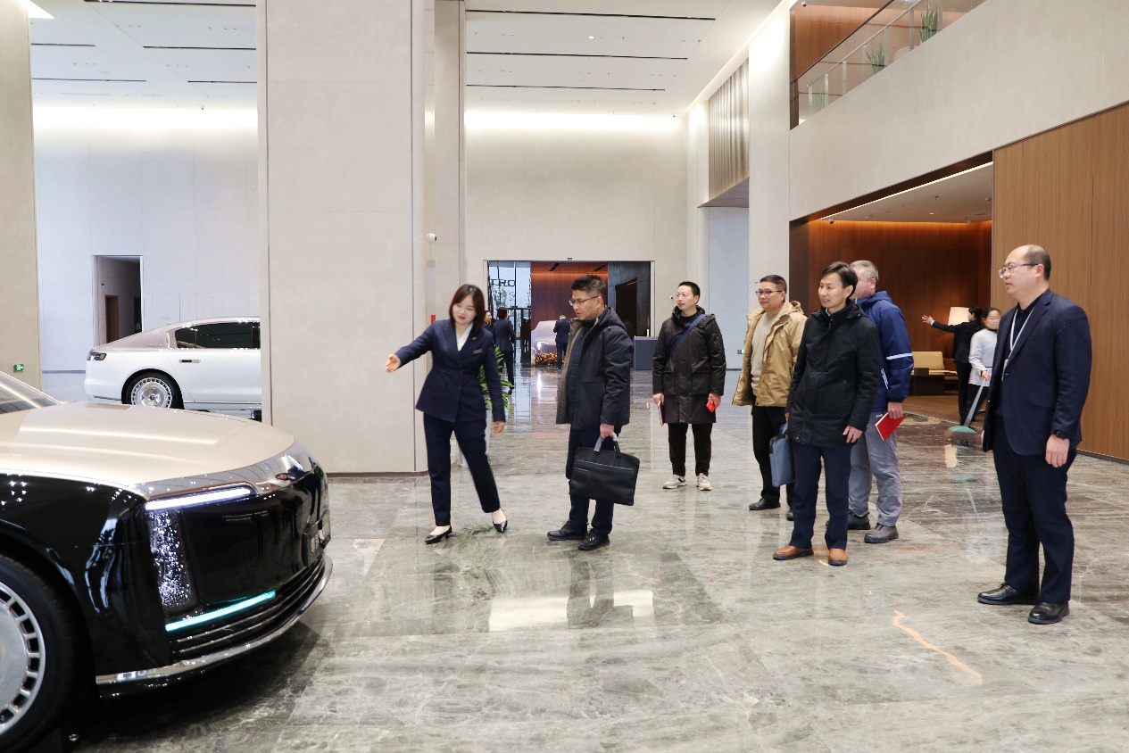 交流伊始,晏祥一行在企业相关负责人的陪同下,实地观摩了尊界超级工厂体验店,近距离感受江汽集团在智能制造、产品研发等方面的硬核实力与发展成就,对企业先进的生产理念和技术创新能力给予高度评价。