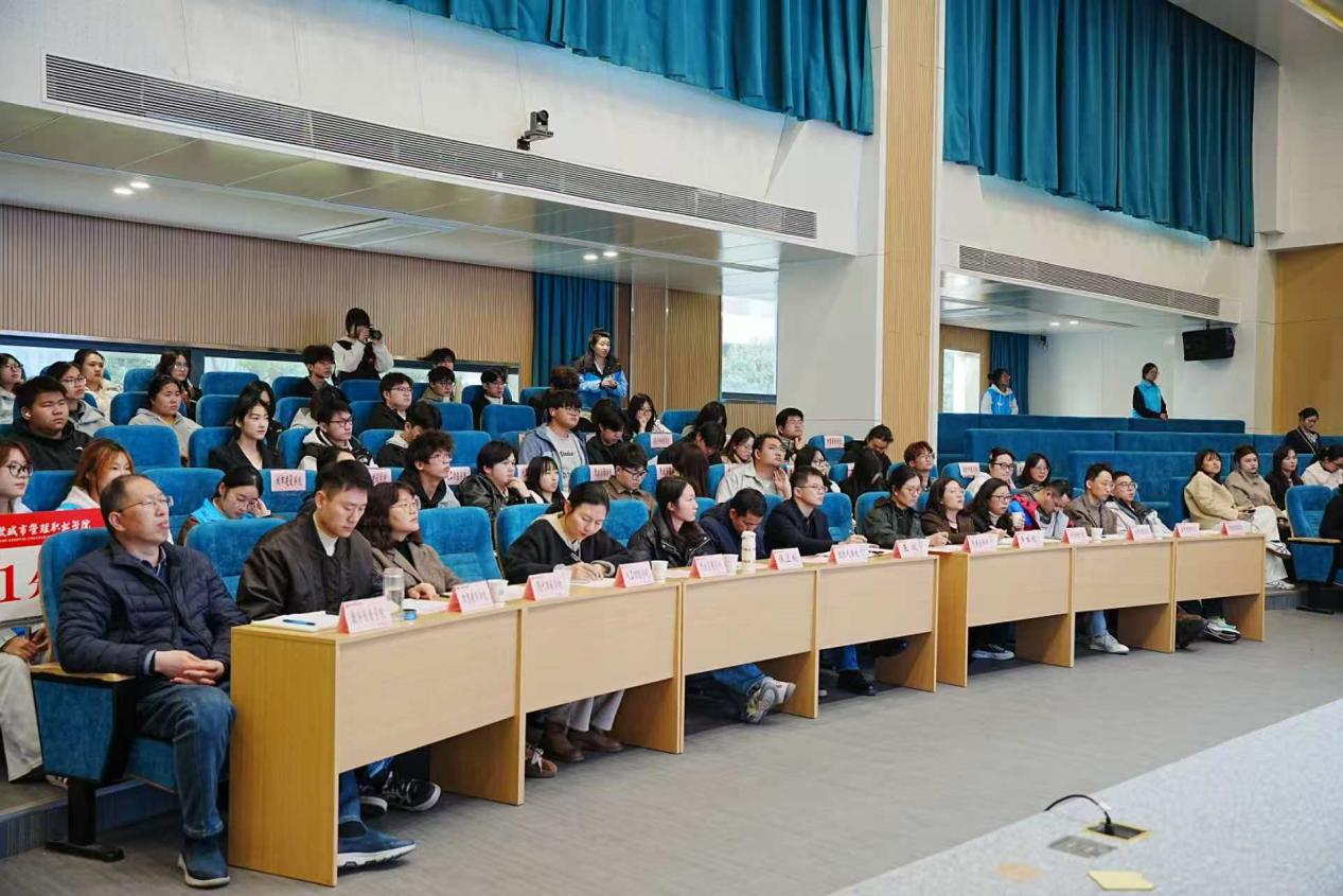 来自各二级学院和中专部的团总支书记依次述职,围绕组织青年学习、团组织自身建设、联系服务青年、服务中心大局和团青工作创新等五个方面,用详实的数据、生动的案例和直观的图片,全面展示了2025年度的工作成果与特色亮点,深入剖析了存在的问题与不足,并提出了2026年的工作思路和改进举措。述职采取“一述一评”方式,团委负责同志现场给予了针对性的客观点评,与会评委结合述职情况和日常工作实际进行现场打分。