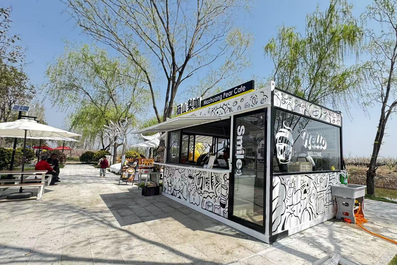 应村里产业发展需求,数字创意学院教师团队承接“砀山马庄梨咖”品牌视觉与店铺空间美化横向课题,将课堂延伸至乡村一线,推动专业建设与地方发展同频共振。为抢抓第31届砀山梨花节客流高峰,确保项目节前落地见效,设计团队先后两次进村开展实地调研与设计施工。团队紧扣“酥梨文化”内核与“现代咖啡”消费场景,完成品牌标志设计、产品包装开发及店铺内外部形象升级,构建起兼具乡土特色与时尚气息的品牌视觉体系,让传统酥梨产区焕发全新活力。