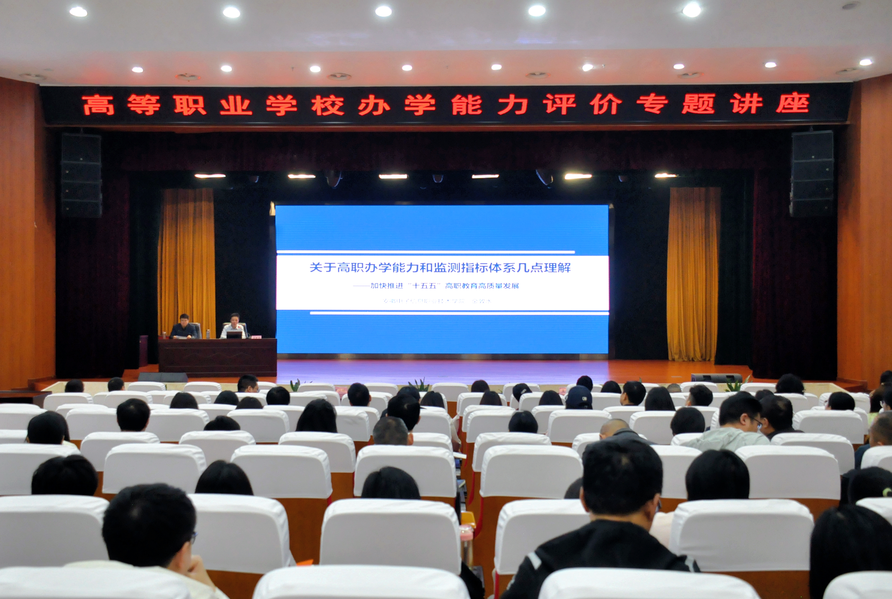 4月17日上午,学院举办高等职业学校办学能力评价专题讲座。安徽电子信息职业技术学院教学科研处处长、教授金敦水应邀作专题讲座。学院党委委员、副院长王波主持会议并讲话,学院领导班子成员,行政教辅部门全体人员,各二级学院(教学部)负责人、教研室主任及教学秘书参加会议。
