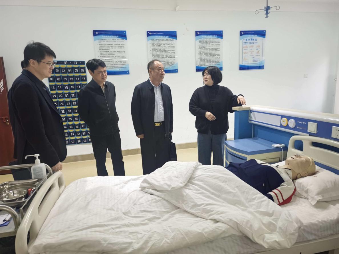 座谈结束后,市红十字会一行专程参观我院智慧康养学院护理实训室,实地察看实训硬件条件,深入了解应急救护技能培育与专业育人成果。