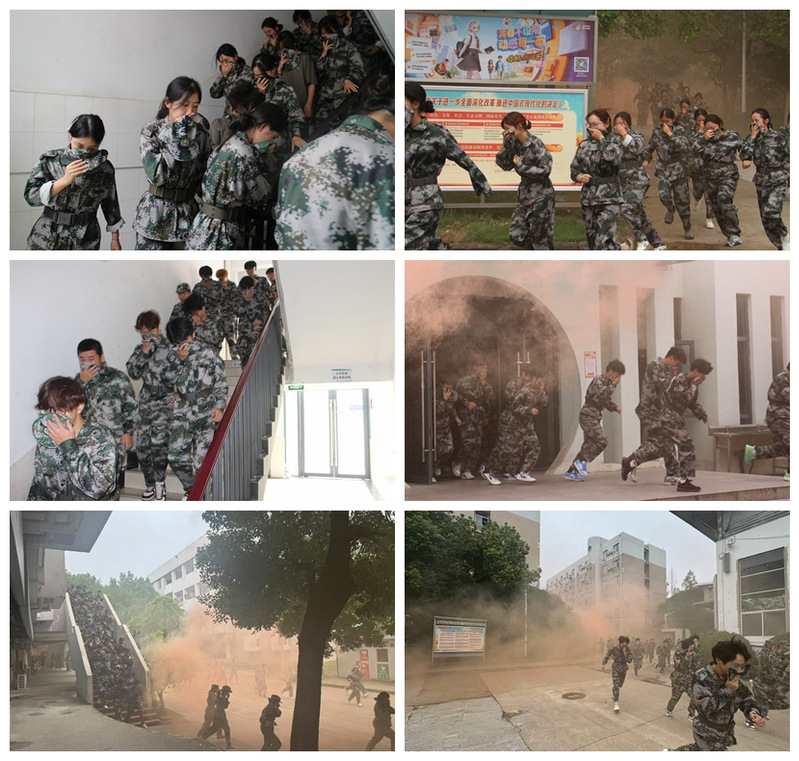 在疏散过程中,新生们在教官的指导下,保持冷静,用湿毛巾捂住口鼻,弯腰低姿,沿着墙壁快速、有序地向楼外指定的安全集结点疏散。过程中,大家严格遵守“不拥挤、不推搡、不慌张”的原则,避免出现“踩踏事故”。所有新生全部安全撤离,疏散行动高效有序,达到了预期效果。