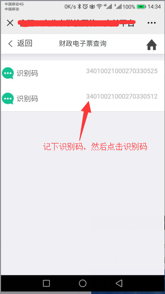 4、记下识别码,然后点击识别码,如图4;之后即可进入安徽财政电子票据公共服务平台。