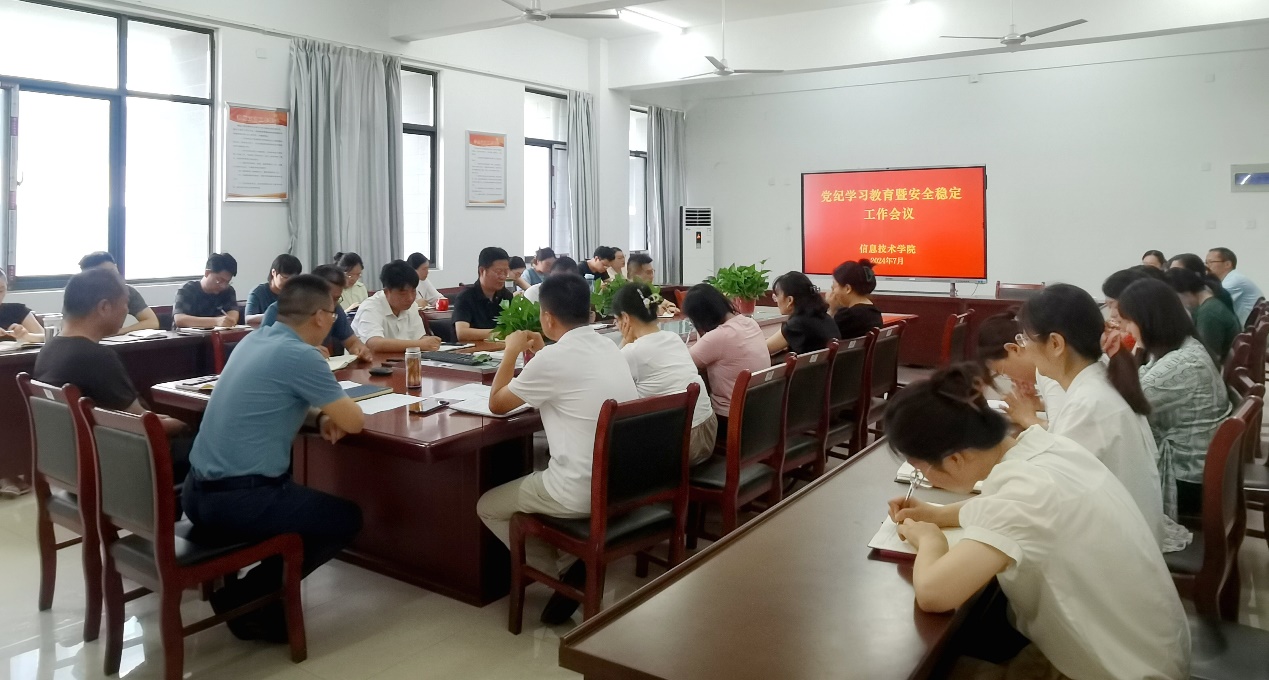 此次会议的召开,不仅增强了信息技术学院教职工的党纪观念和安全意识,也为学院的安全稳定发展和教育教学质量的提升奠定了坚实基础。未来,学院将继续坚持党建引领,强化安全管理,推动学院各项工作再上新台阶。(通讯员:张书茂)