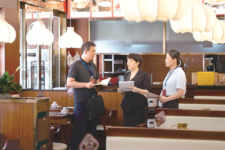 河南省漯河市郾城区纪委监委围绕公款吃喝、违规接受管理服务对象宴请等违反中央八项规定精神问题开展监督检查,一严到底狠刹歪风邪气。图为近日,该区纪检监察干部在辖区某饭店了解相关情况。王晓 摄