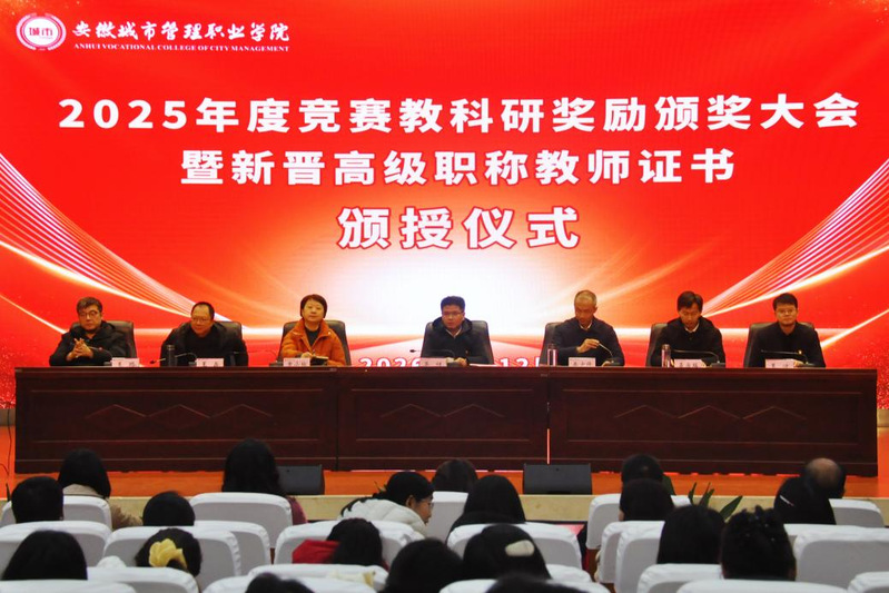 为全面总结年度育人成果,表彰激励先进典型,凝聚师生奋进力量,2026年1月12日,学院在西附楼报告厅举行2025年度竞赛教科研奖励颁奖大会暨新晋高级职称教师颁授仪式。学院党委书记晏祥,副院长章小槟、聂宗瑶、王鑫、王波,纪委书记王路等班子成员出席,全体教师齐聚一堂,共同见证荣耀时刻,蓄力崭新征程,大会由党委副书记秦少锋主持。