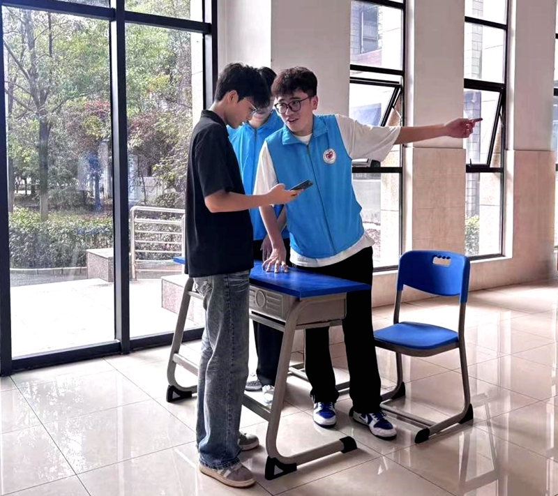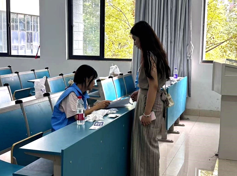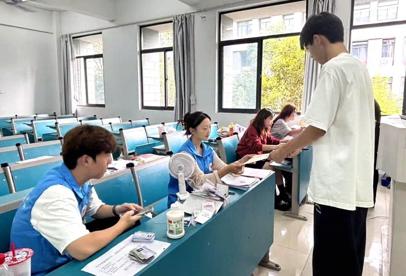 报到现场,身着统一蓝色志愿马甲的志愿者们成为校园里最亮眼的“移动指引牌”。他们分散在学校门口、教学楼入口、报到处等关键点位,主动接过新生手中的行李,一边帮着提拿物品,一边细致讲解报到步骤;遇到家长咨询宿舍位置、生活设施分布等问题,志愿者们也耐心答疑解难,用热情的态度缓解了新生及家长的陌生与焦虑。报到处内,工作人员提前调试好电脑设备,核对信息、收取材料、发放校园手册与生活用品等流程衔接顺畅,帮助每位新生快速完成报到。