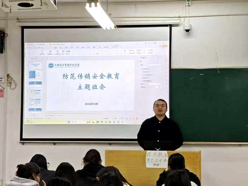 班会围绕传销的基本概念、常见类型、新型套路、严重危害及防范措施等内容展开,引导学生深刻认识传销本质。针对大三实习学生,学院灵活采用线上方式进行;对因故未能参加的学生,则进行点对点补学,确保宣传教育无死角。
