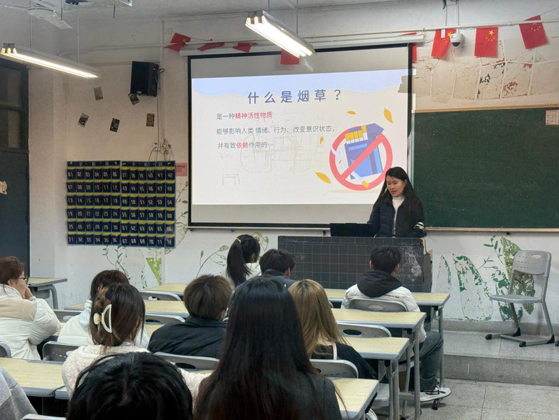 班会围绕烟草危害、校园控烟政策、科学戒烟方法等内容展开,通过案例讲解、互动讨论等形式,引导学生深刻认识吸烟及二手烟的危害。同学们积极参与,围绕“拒绝第一支烟”“共建无烟环境”;等话题展开热烈讨论,现场氛围活跃。