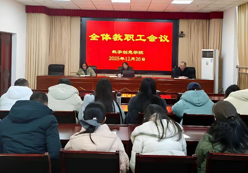 为全面梳理学期工作,确保期末各项任务平稳、规范、有序推进,数字创意学院于12月26日下午召开全体教职工大会,专题部署期末阶段重点工作。学院领导及全体教职工参会,会议由数字创意学院党总支书记、院长陈芳主持。