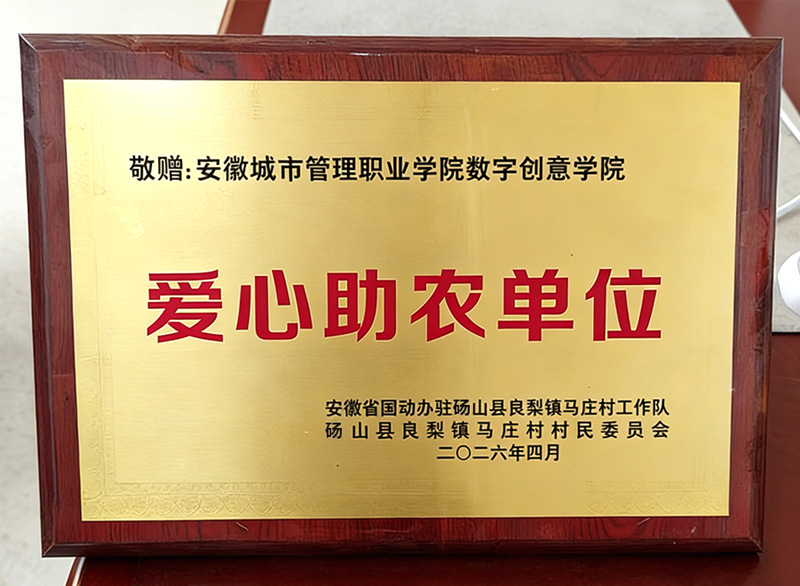 为深入贯彻乡村振兴战略,推动产教融合走深走实,近日,安徽城市管理学院数字创意学院广告艺术设计教师团队深入砀山县良梨镇马庄村,以专业设计赋能乡村产业新业态,成功助力“砀山马庄梨咖”品牌升级,获当地村委会授予“爱心助农单位”荣誉称号。