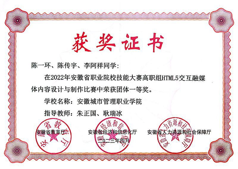 (6)2022年安徽省技能大赛HTML5交互融媒体内容设计与制作一等奖;