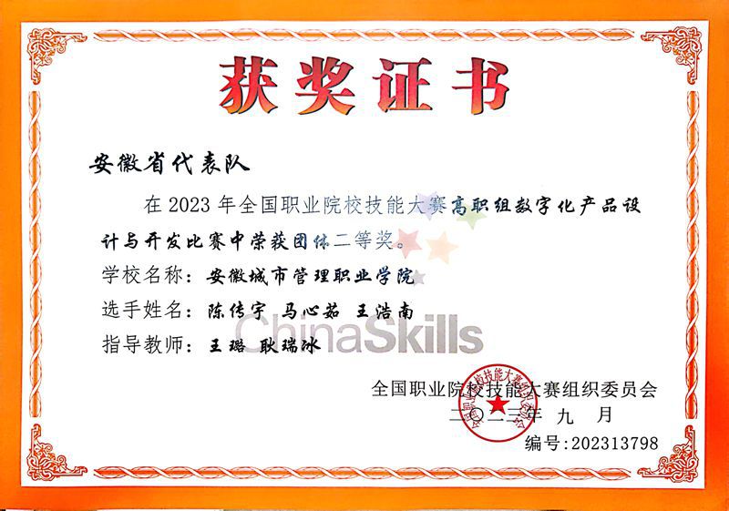 (9)2023年安徽省技能大赛数字化产品设计与开发一等奖;
