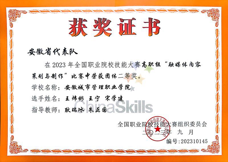 (10)2023年全国职业技能大赛国赛融媒体内容策划与制作二等奖;
