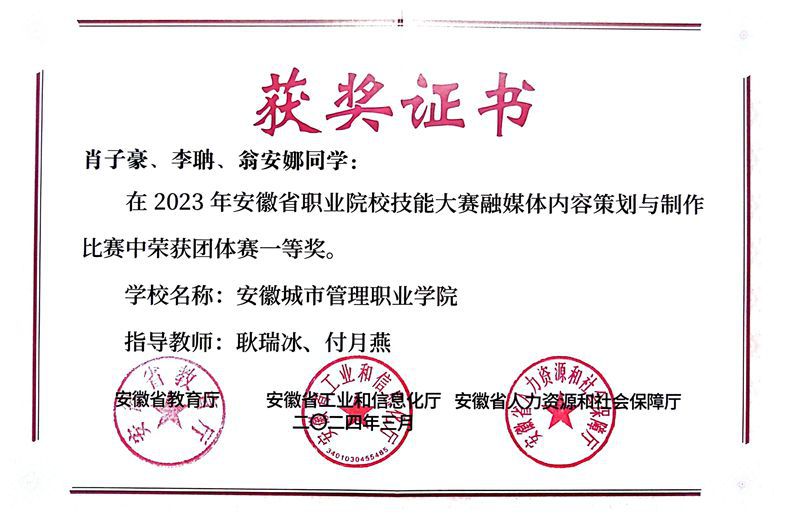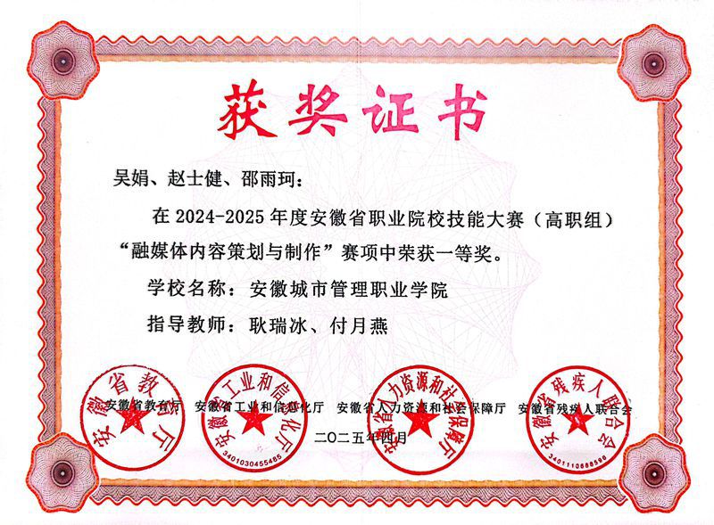 (12)2024年安徽省技能大赛融媒体内容策划与制作一等奖。
