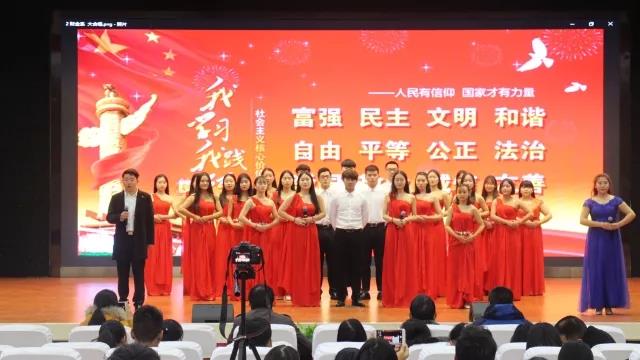 汇演由大学生艺术团激情飞扬的歌舞《冬天里的一把火》开场,展现中华传统文化的茶艺表演、书法表演和民族舞蹈表演美轮美奂;合唱《社会主义核心价值观之歌》、《党旗在我心中》让在座的师生们再次经受思想教育;地方戏曲联唱展现了大学生的多才多艺和文化自信;由思政教研部老师们自编自演的情景剧《晨曦》展示了在伟大的中国共产党的领导下,无数革命前辈抛头颅洒热血,才有我们今天的安定幸福的生活。一幕幕精彩绝伦的汇演展现了振奋人心红色精神,无一不感染在座的所有人,让同学们又一次深刻学习了十九大精神。