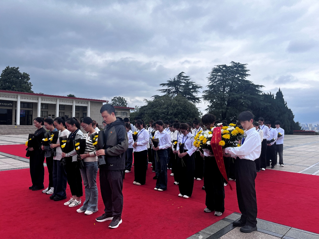 在庄严肃穆的纪念广场,蜀山烈士纪念碑巍峨矗立。学员代表手捧花篮缓步上前,将承载着深切敬意的花篮敬献于纪念碑前,部分学员仔细整理花篮缎带,每一处细节都彰显对英烈的尊崇。随后,全体学员与校团委老师整齐列队,面向纪念碑静立默哀。肃穆的氛围中,大家共同缅怀为争取中华民族独立、实现国家富强、守护人民幸福而英勇献身的革命先烈,将无尽哀思与崇高敬意融入静默时光。