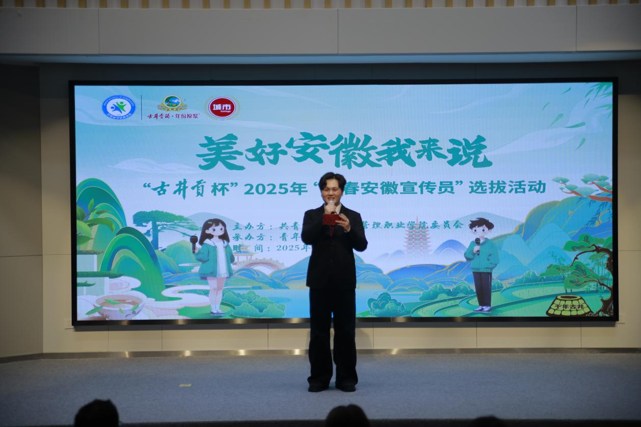 10月14日下午,学院举办“古井贡杯”2025年“青春安徽宣传员”校赛选拔活动,来自各二级学院的14名参赛选手同台竞技,展现青春风采与安徽魅力。