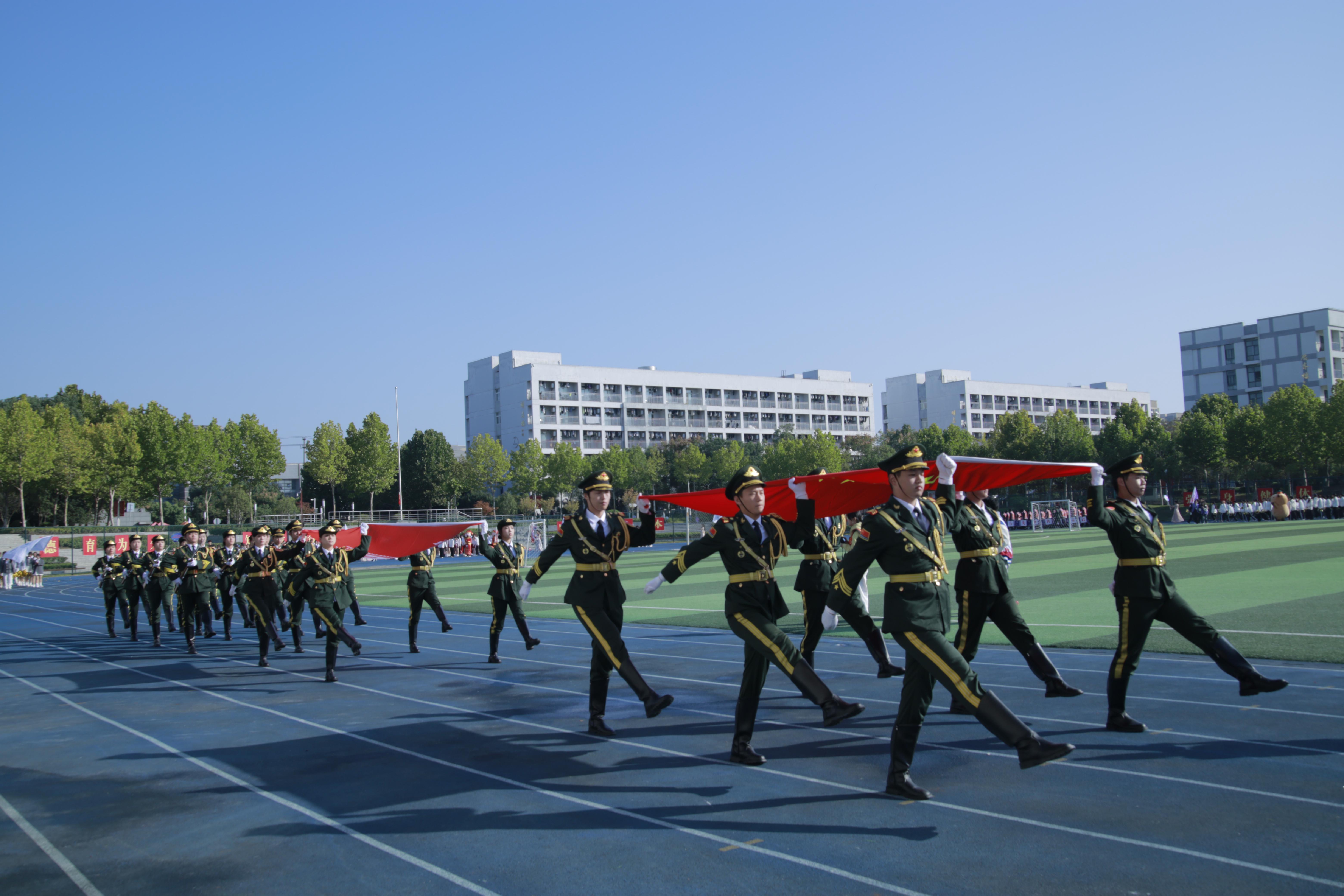 升国旗仪式庄严隆重。在全体师生的注目下,五星红旗冉冉升起,雄壮的国歌回荡在运动场上空,激荡着每个人的爱国情怀与奋斗决心。