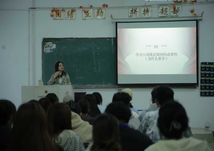 在深入学习贯彻中央八项规定精神专题研讨中,张春丽老师从青年学生学习中央八项规定精神的重要性入手,剖析高校作风建设典型案例,深刻诠释了“中央八项规定精神是新时代党的作风建设金色名片”的内涵。她指出,作为学生干部,更要以身作则反对形式主义,把更多精力放在服务同学的实事上,希望青马学员在作风建设方面带头学深悟透,带头知行合一,带头示范引领,树立严的观念,培养实的作风。青马班学员分享的实践感悟引发共鸣,学员们纷纷表示要将作风建设要求转化为日常行为准则,争当清风正气的践行者。