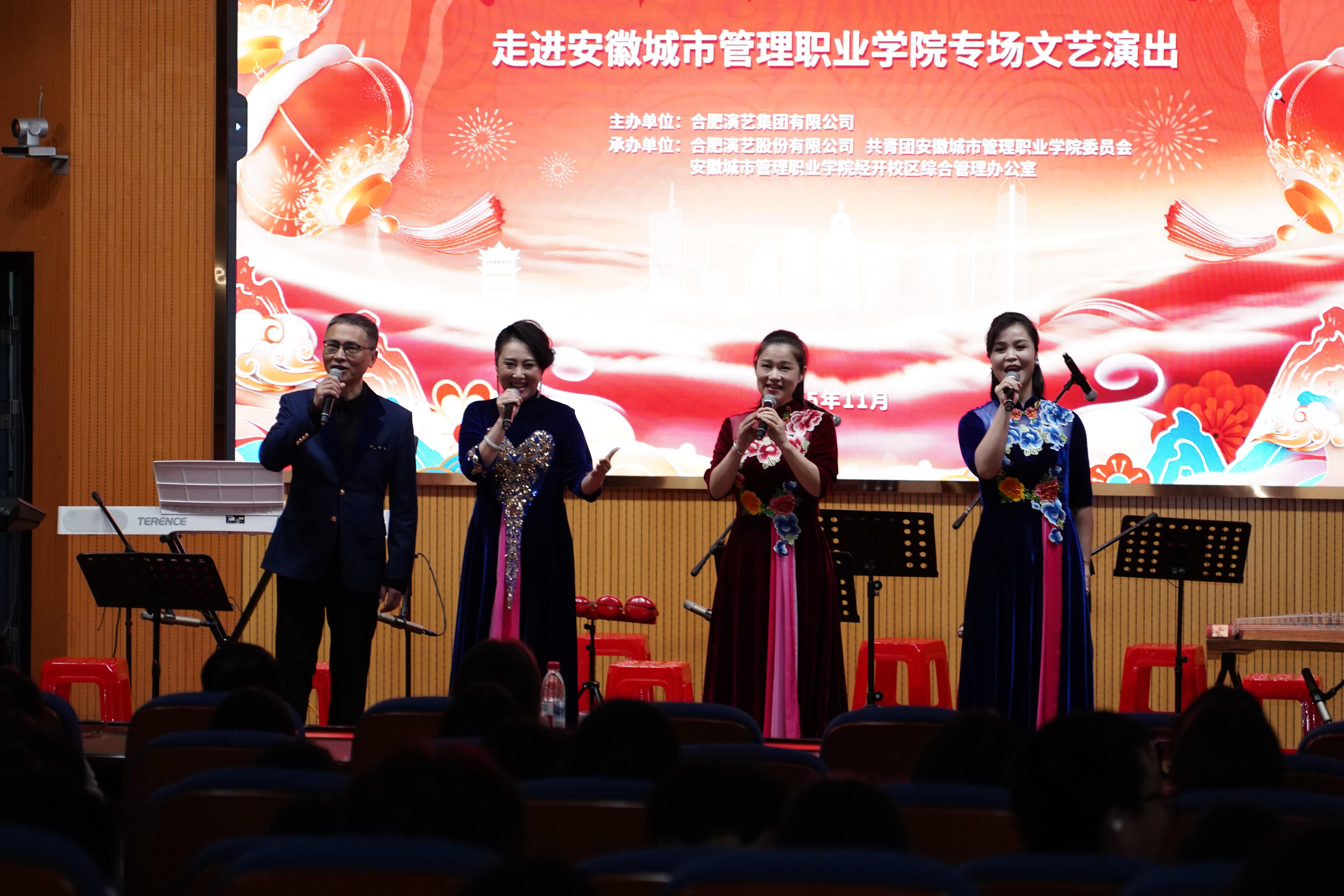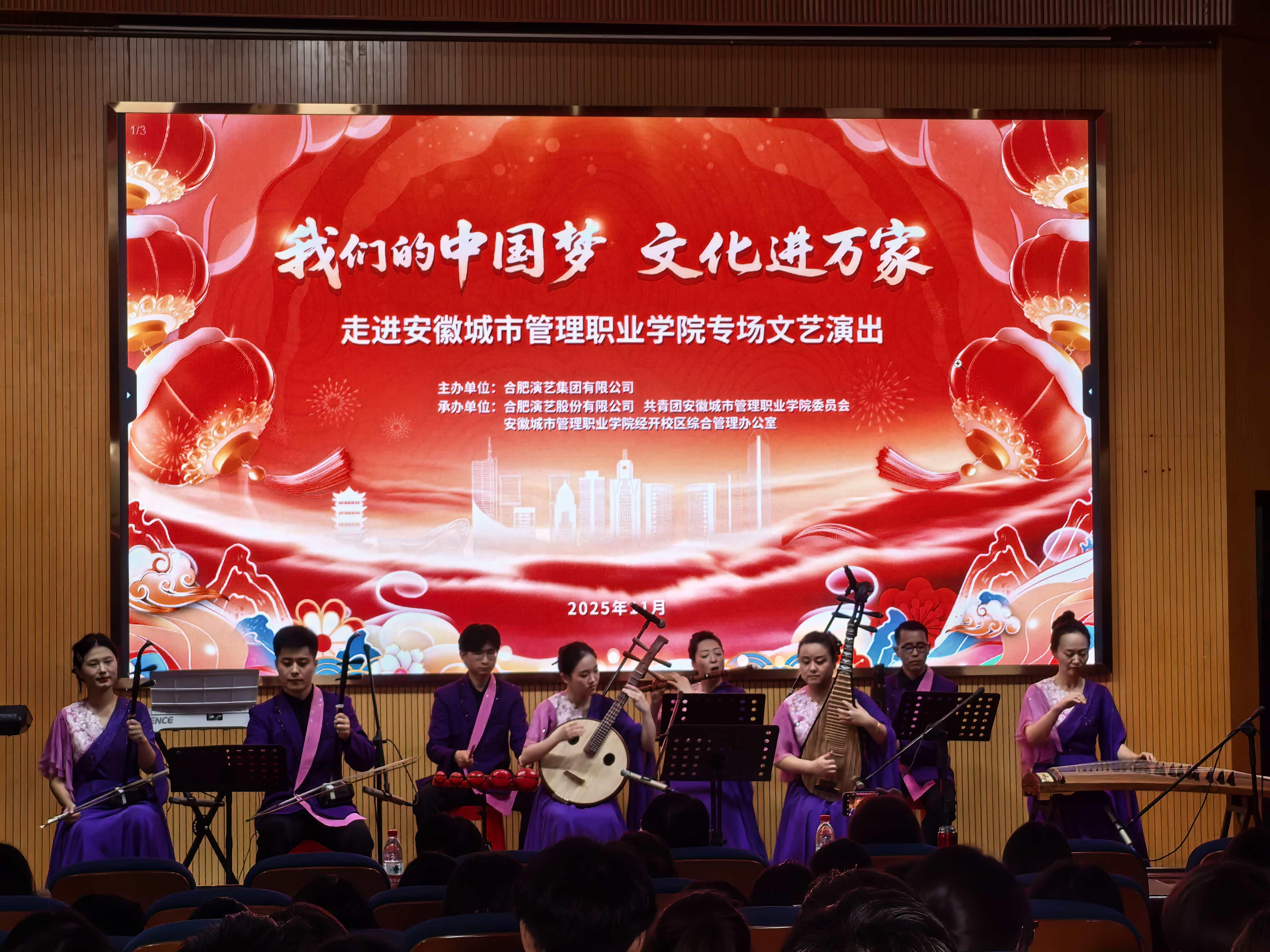 为丰富校园文化生活,提升学生艺术素养,2025年11月12日下午,由合肥演艺集团有限公司主办的“我们的中国梦——文化进万家”影视金曲专场音乐会在我院经开校区综合楼报告厅精彩上演。党委委员、副院长王波出席本次活动,与近五百名师生共同观看了本场演出。报告厅内现场座无虚席,洋溢着浓厚的艺术气息。