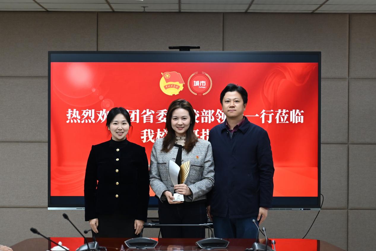2025年11月24日下午,团安徽省委学校部部长、省学联秘书长邹永生率调研组莅临我院,为学院颁发2025年“挑战杯”安徽省赛“优胜杯”并调研共青团工作。省直团工委副书记盛子珈、团省委学校部一级主任科员徐怀玉参加调研,学院党委委员、副院长王波陪同。