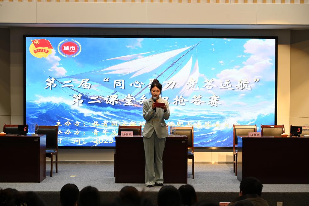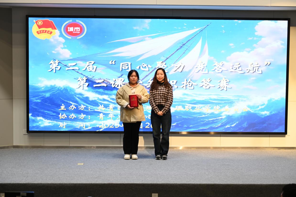 在紧张刺激的抢答中,参赛选手紧盯抢答器,在手速与脑力的双重较量中,现场比分你追我赶、交替上升。台上竞争激烈,台下掌声不断。比赛过程中,各队选手不仅展示了丰富的二课知识储备,更体现了优秀的团队协作精神,赢得了观众的一致好评。