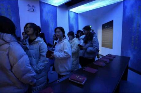 在解说员的引导下,师生首先参观了二楼的安徽监狱历史文化展览。展览以图文、实物、场景复原等多种形式,生动系统地展示了安徽监狱的发展历程和精神文化。随后,师生自行参观了法治宣传教育长廊,长廊内陈列着丰富翔实的法治资料,使学生们对宪法有了更为直观的了解。